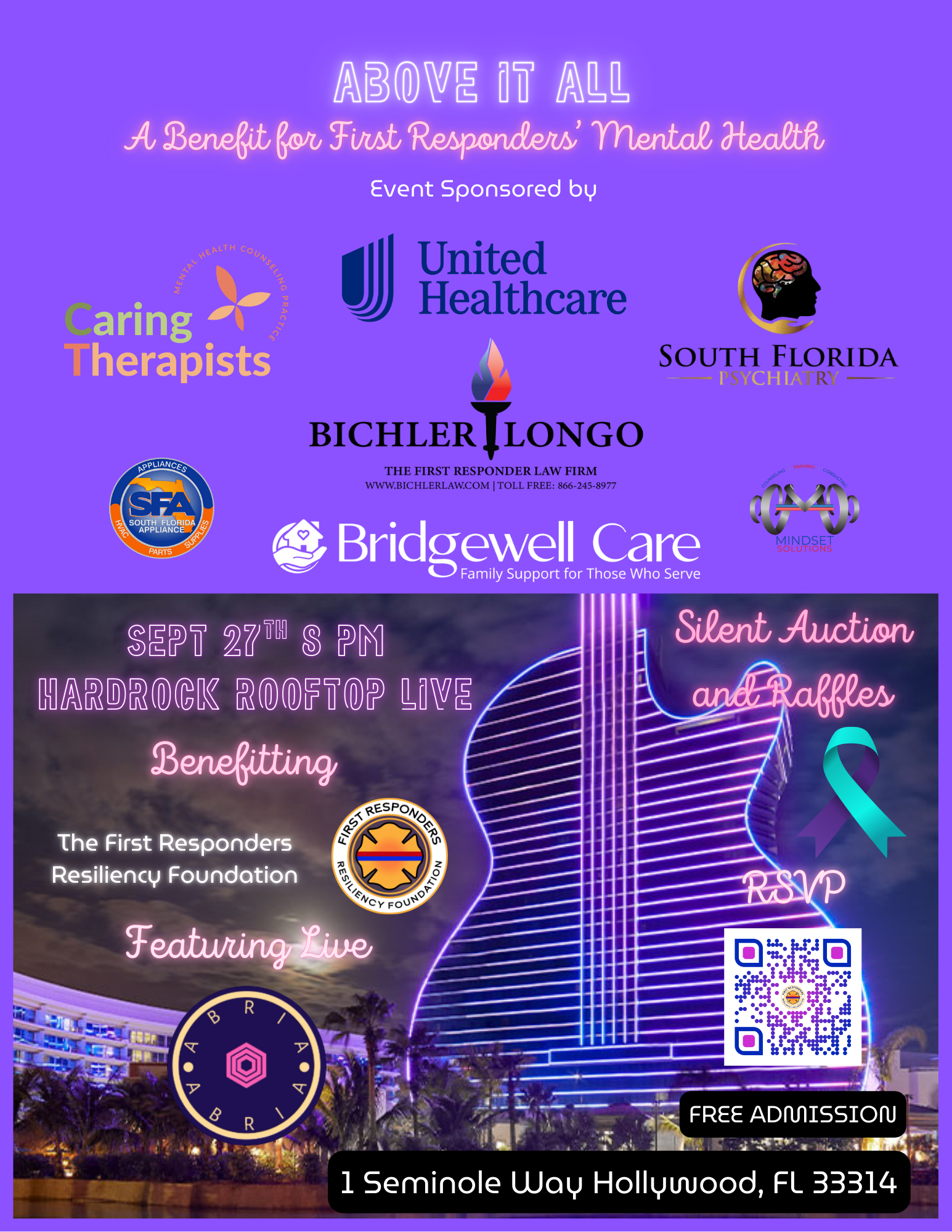 UPCOMING EVENTS: SIGN UP TO THE NEWSLETTER TO GET THE LATEST ON EVENTS Success! Email Subscribe Media: View this post on InstagramA post shared by WSVN 7 News (@wsvn) PAST EVENTS: FRRF Day at the BallparkMay 18, 2024 | 2:30pm-8pm LoanDeport Park Mission BBQ-Doral-Supports the mission of the FoundationOn April 22, 2024 Mission BBQ-Doral presents its donation to the Foundation from funds raised during their soft opening on March 13, 2024. Dancing like the Stars Miami-The Show Must Go On!MAY 6 |5:30-11PM PINECREST GARDENS-THE BANYAN BOWL Crisis Intervention & Safety Strategies for First RespondersMarch 28 , 2024|11 AM-3 PM Fire Tower Miami From Tragedy to Triumph: Captain Ben Vernon's Inspiring Story of ResilienceMAY 2, 2023 | 10AM-12PM THE FIRE TOWER MIAMI Jocko Live!FEBRUARY 4, 2023Â Â | 8-11AM THE FIRE TOWER MIAMI Ignite Resiliency! A Mental Health & Wellness FairMAY 2, 2022 | 11AM-5PM THE FIRE TOWER MIAMI Contact Notice: JavaScript is required for this content. EMERGENCY HOTLINE 786-551-4911 For Business Communications 8000 NW 21st St #222, Doral, FL 33122 305-593-6100 [email protected] Notice: JavaScript is required for this content. EMERGENCY HOTLINE 786-551-4911 For Business Communications 8000 NW 21st St #222, Doral, FL 33122 305-593-6100 [email protected]
